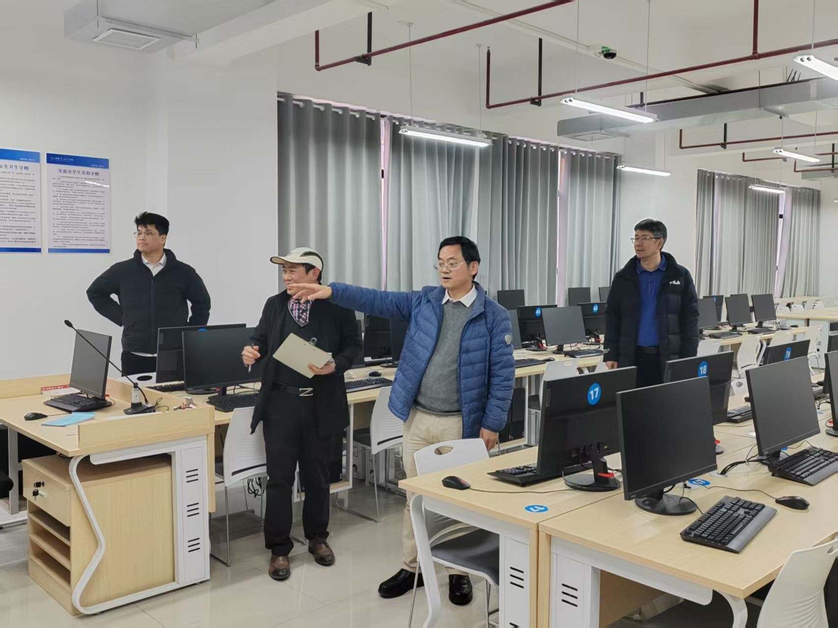 为切实做好期末安全管理工作,1月14日,计算机学院党委书记刘大维、院长杨恒伏、党委副书记陈奕、副院长马碧阳及安全检查工作组,对学院教学办公区、实验室等重点场所开展全方位安全隐患排查。