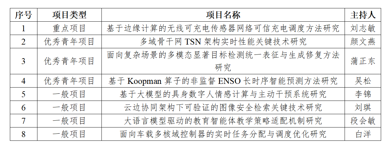 计算机学院2026年度省自然科学基金立项8项