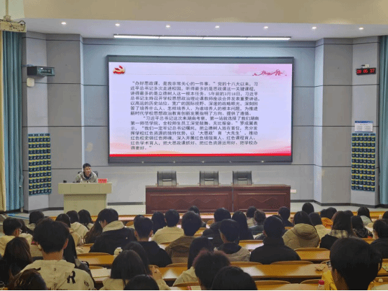 11月26日晚,计算机学院党委书记刘大维在怀中南110教室,为计算机学院、智能制造学院入党积极分子讲授《广大青年要在奋进新征程中争当先锋》专题党课。