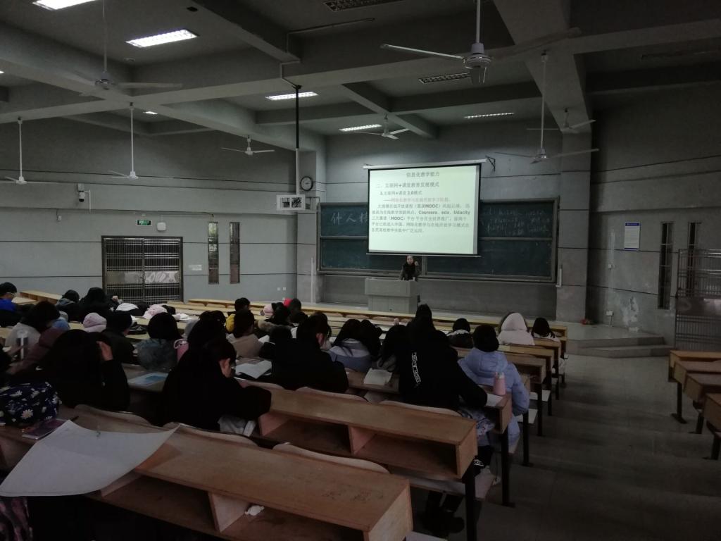 2018年12月25日下午2点,润寰南106教室,何昭青教授为我院18级787教技班作了一个精彩讲座。 何教授从介绍农业时代到AI时代不同时期段教育技术应用,深入分析互联网+课堂教师模式,以及教育部关于教育信息化建设工作若干文件精神,延伸到今后的工作中,让我们明晰教育技术在教育信息化的地位和作用,明晰教育信息化、教师信息化教学能力的发展及重要性。告诫未来的乡村小学教师,应该立志为乡村教育信息化做出重大贡献。 讲座过程中,何教授亲切幽默的口吻激发了同学们的积极性和求知欲,相信本次讲座对同学们来说是一次极大的帮助,化解同学们心中的疑惑与不解。