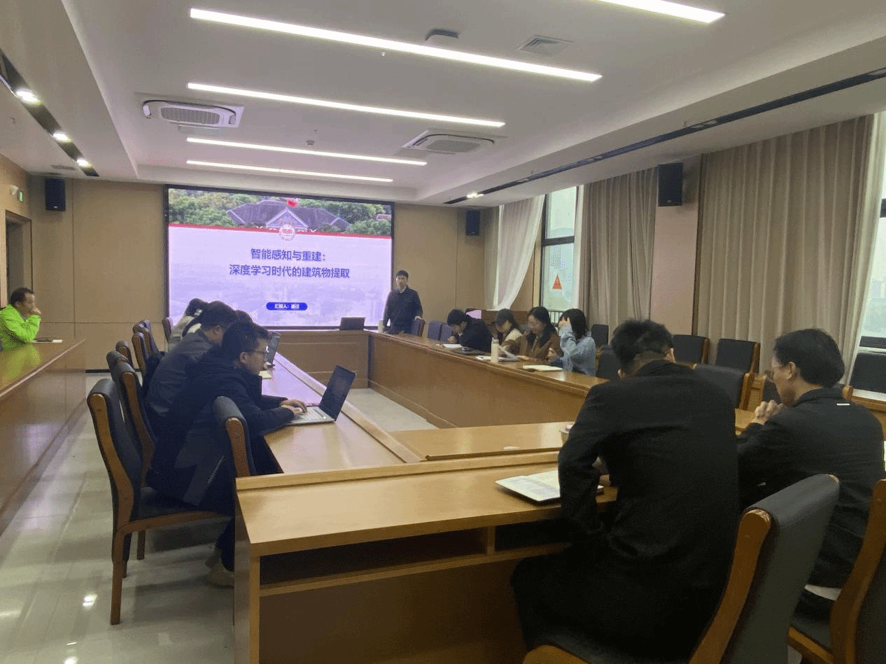 在互动环节,青年教师们就技术应用场景拓展、算法优化瓶颈等问题踊跃提问。唐迁结合自身研究经验,逐一作了细致解答,现场学术交流氛围热烈。与会教师普遍反映,讲座内容系统全面、重点突出,不仅加深了对智能感知与建筑物提取技术的理解,也为后续开展相关研究提供了宝贵思路。