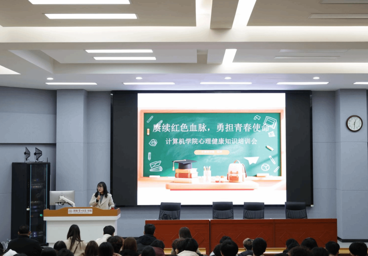 4月2日晚,计算机学院在润寰南105、106教室举办“赓续红色血脉、勇担青春使命”与“青春护航,安全同行”专题培训。院党委副书记陈奕、全体辅导员老师及各班班长、团支书、副班长、心育委员、寝室长共计500余人参加培训。心理专干廖艳芳、汤艳,安全专干刘森林、周峰竹老师担任主讲。